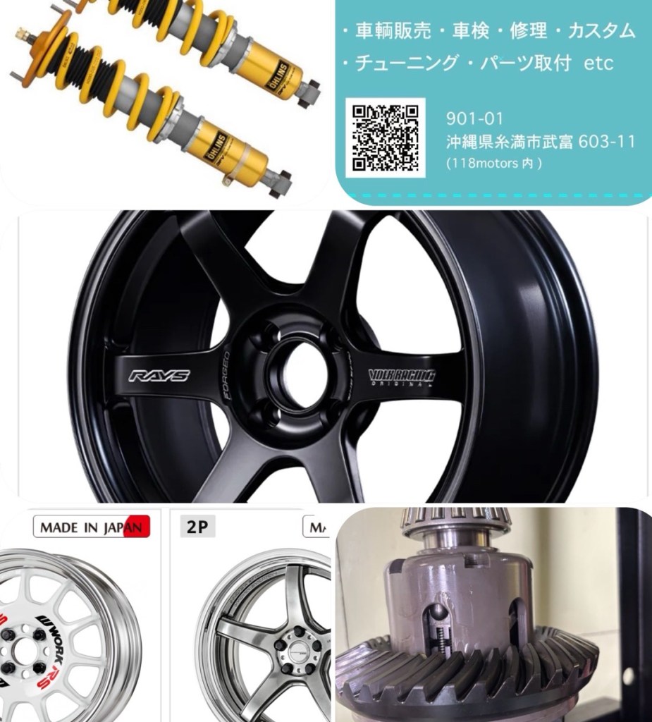 ・足廻り→タイヤ・ホイールのチョイスで軽快さを増したり、車高やアライメント調整でとても良く曲がる仕様または直進安定する仕様にもできます。 乗り心地を固くしたり柔らかくすることも容易です☆