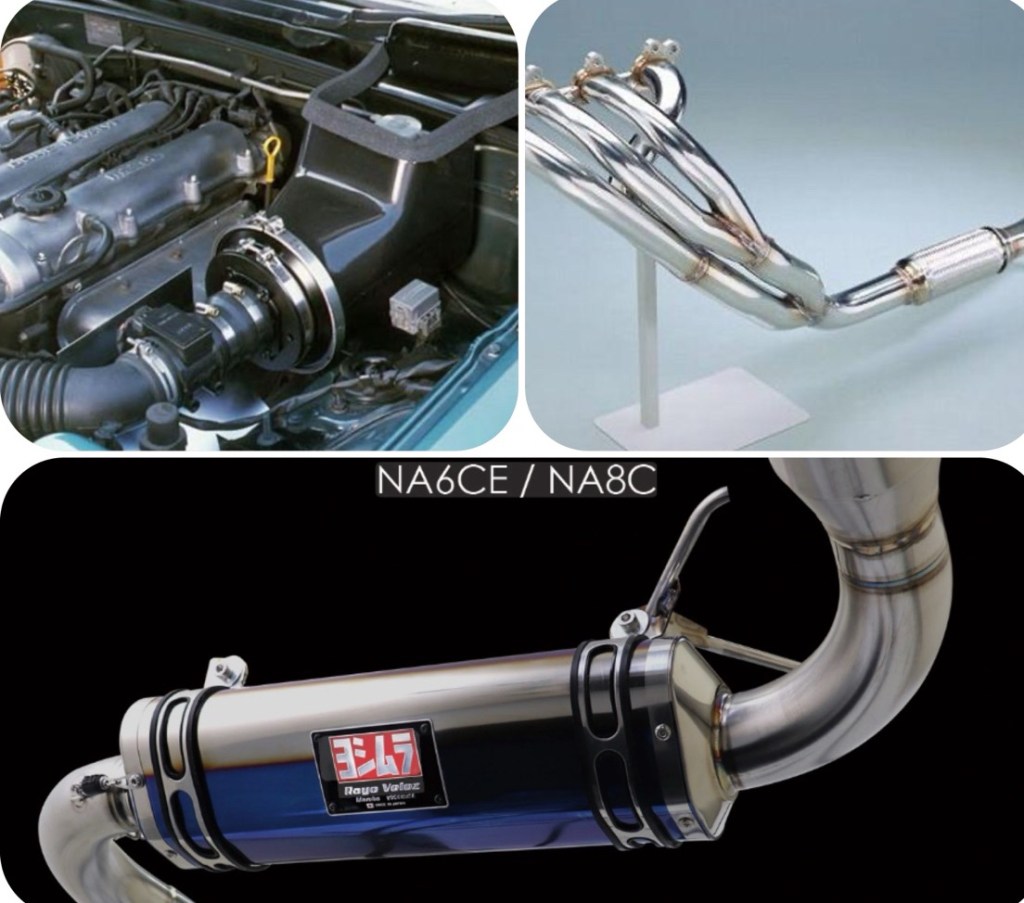 ・吸排気→エンジンルームを開けてすぐに目に入るエアインテーク。フィルター部→インテークパイプ→インテークマニホールドが交換可能で、エンジンルームの雰囲気を一新することができます。空気流入量が増加することで『吹け上がり』『トルク感』も自分好みに☆ 空気流量に合わせて排気側もエキマニやマフラーで調整することで、『吸排気音』『乗り味』が変わってきます。